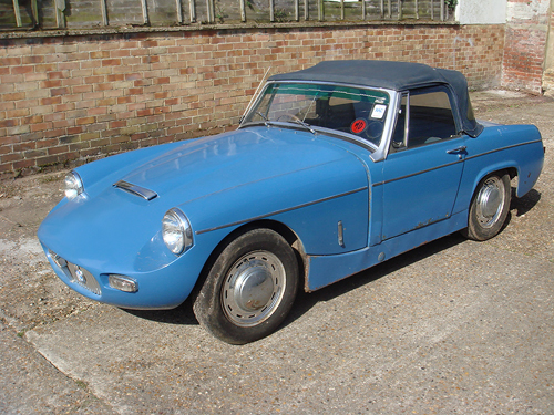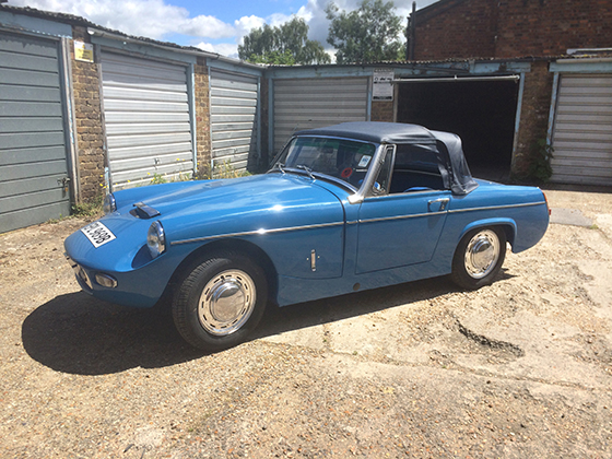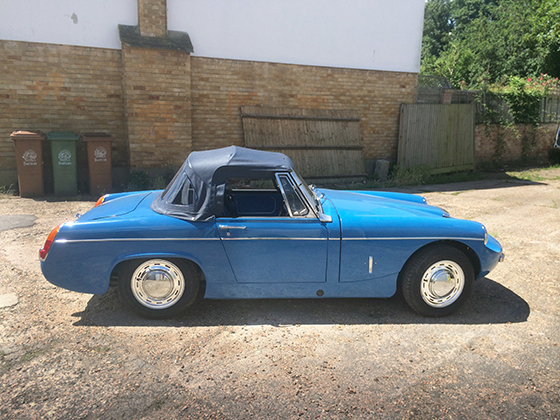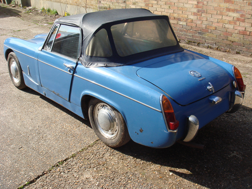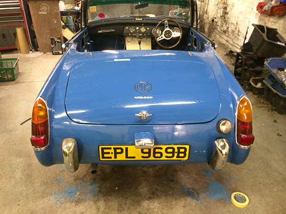 The finished car (pictured above and below) with it's original wheel trims and a new navy hood fitted, this car really was a labour of love and I would never ever take on a project as rusty and as far gone as this one, but it does show what can be done with even the worst condition Sprite or Midget, completion date for this car was June 2014 |