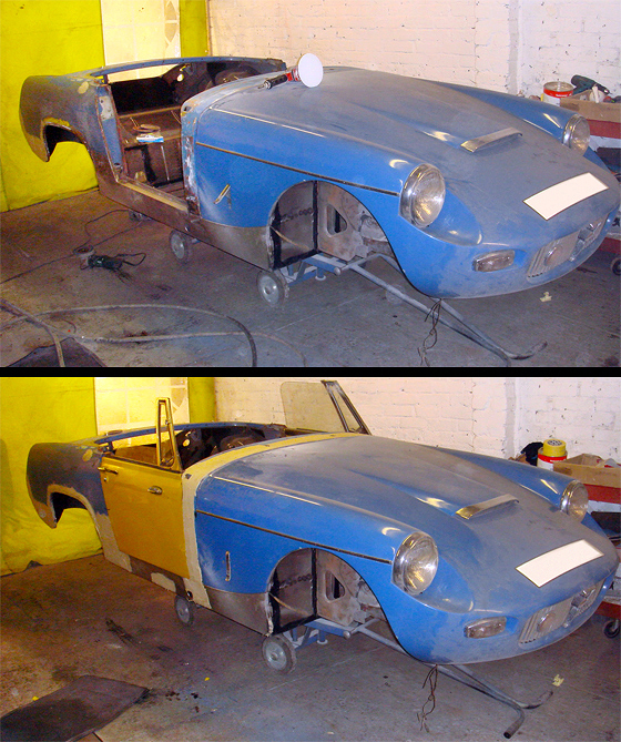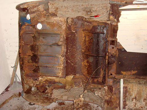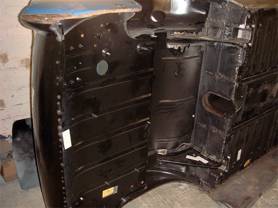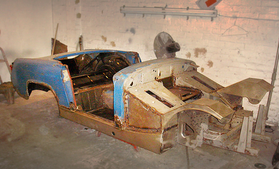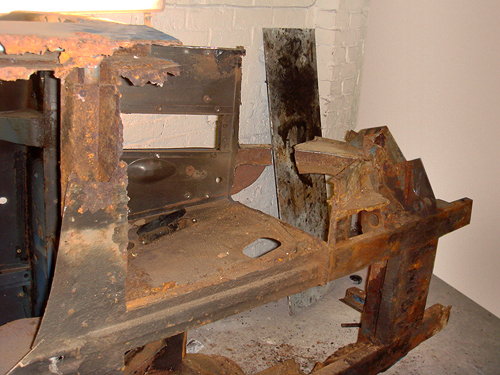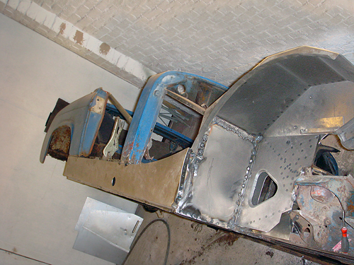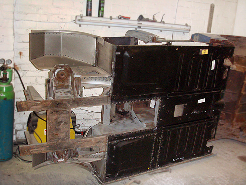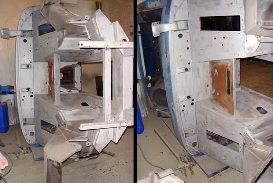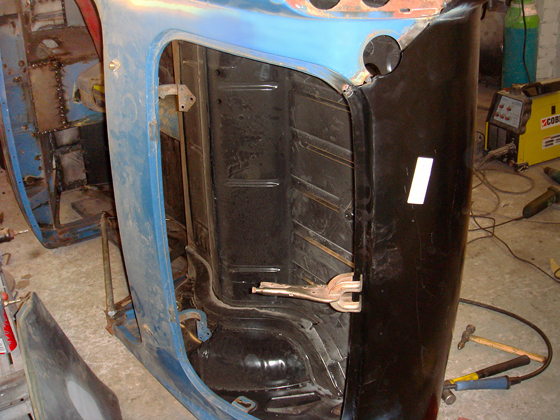 The nearside now under reconstruction with new front inner wings being fitted |