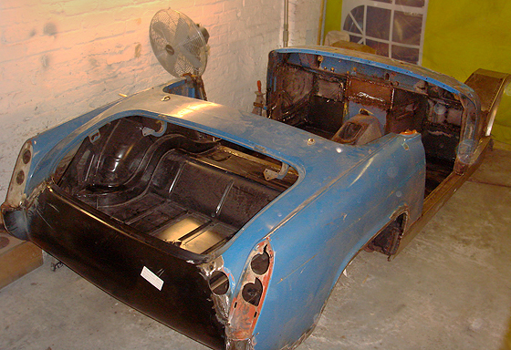 The underbonnet area and front chassis has now been sandblasted which will save hours of sanding and rubbing down to get back to bare metal |