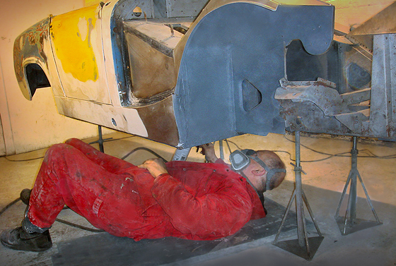 Bodyshell now fully panelled and welded prior to seam sealing, lead loading, filling and preparing for primer |
