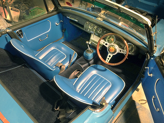 Full interior remade entirely by us, including making patterns for the original Mk2 seats, dashboard re crackle finished too |