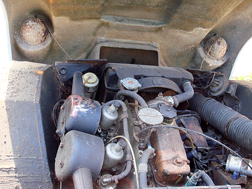 As if the rust was not bad enough, the engine is also seized and will require rebuilding, along with all ancillaries, such as carbs, dynamo, starter, wiring etc. and to add insult to injury the car had been a home to generations of squirrels over the years as the sacks of leaves and acorns that were removed from it paid testament to. |